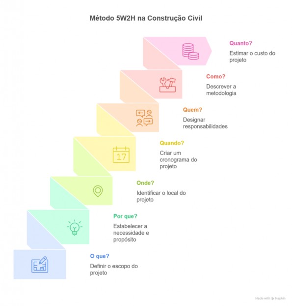 Uma ferramenta útil nesse processo é o método 5W2H, que ajuda a responder perguntas essenciais, de acordo com o esquema a seguir.