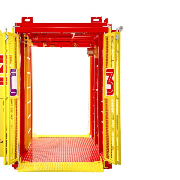 O sistema opera por meio de cabine guiada por trilhos verticais do tipo cremalheira, garantindo movimentos estáveis e precisos mesmo em grandes alturas, com ganho significativo de produtividade e melhor organização da obra.