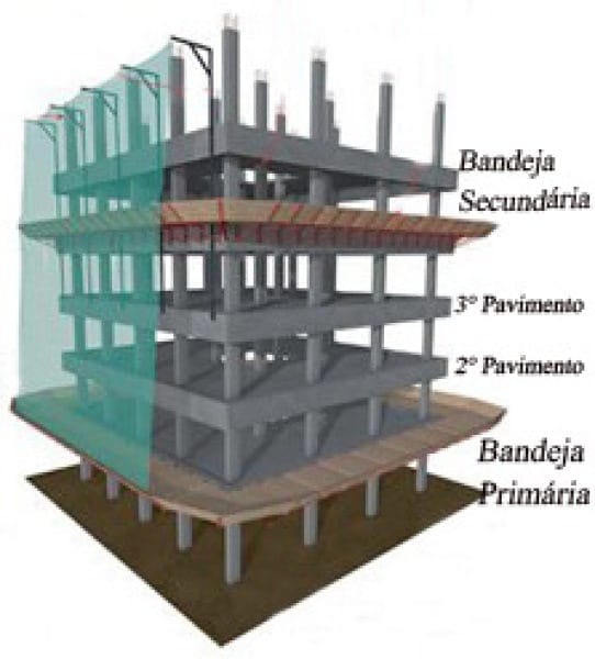 The use of the primary protection platform is mandatory to prevent accidents caused by falling objects during construction, protecting both workers and the general public. Its installation is a requirement of occupational safety standards, such as NR 18, which aims to minimize risks and ensure a safe working