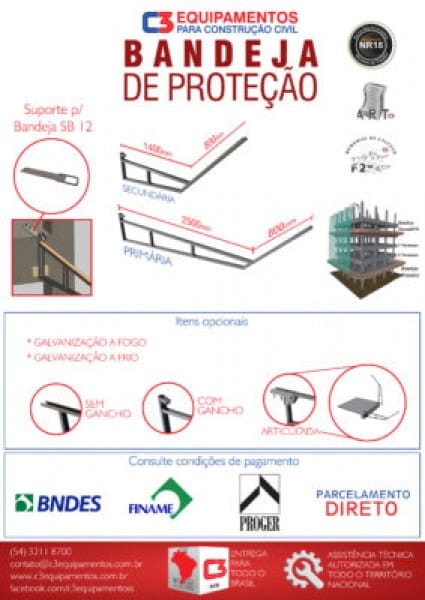 The Protection Trays are used to prevent material falling around the building, ensuring safety and higher productivity. The primary model should be installed shortly after the first slab is concreted, at a height equal to a ceiling height above ground level, and throughout the perimeter of the building.