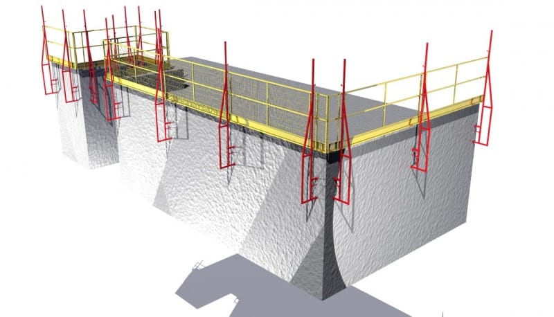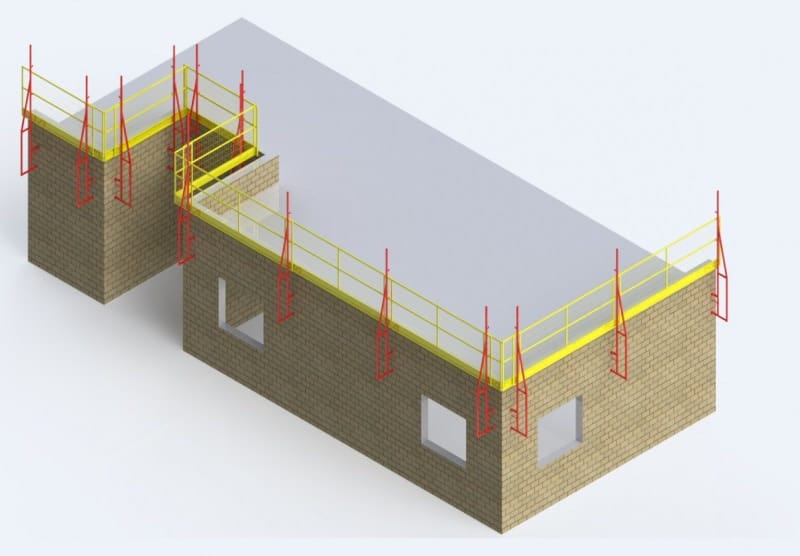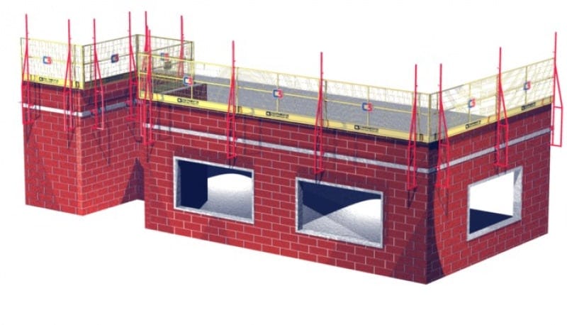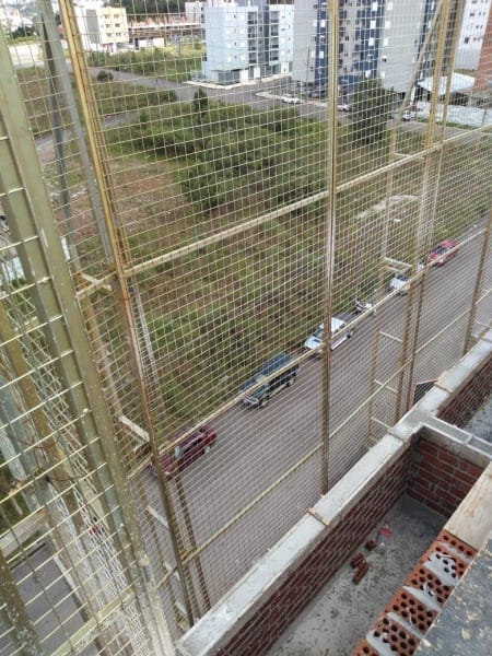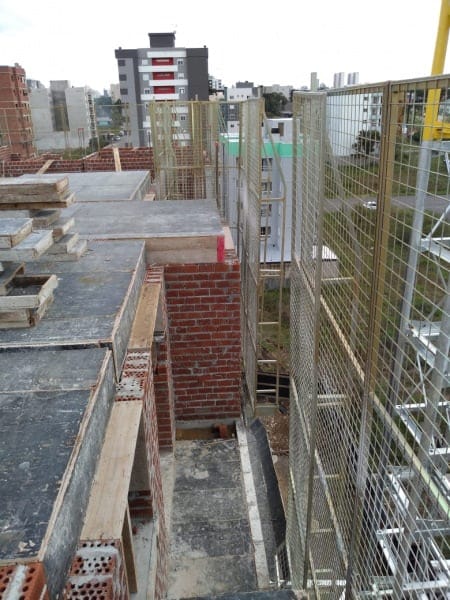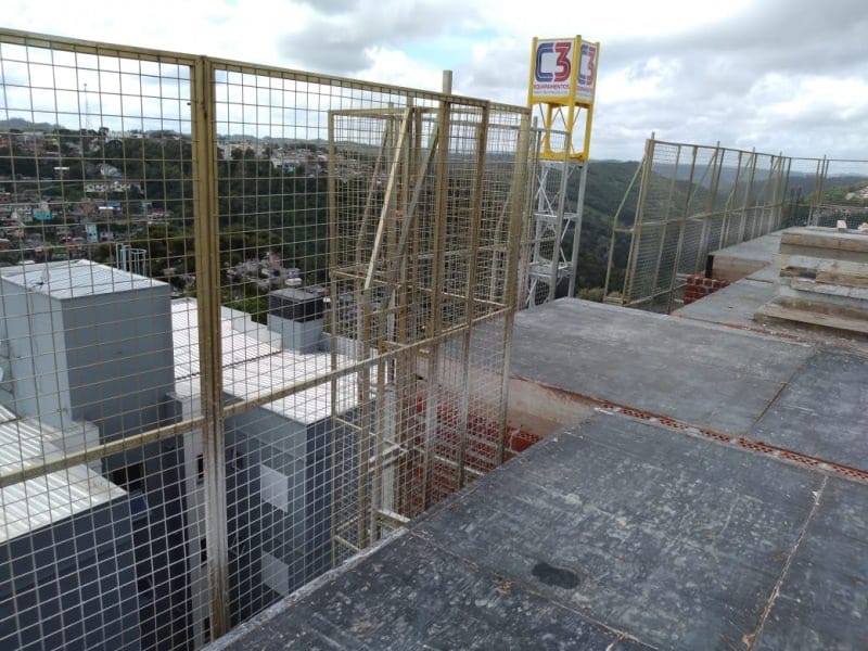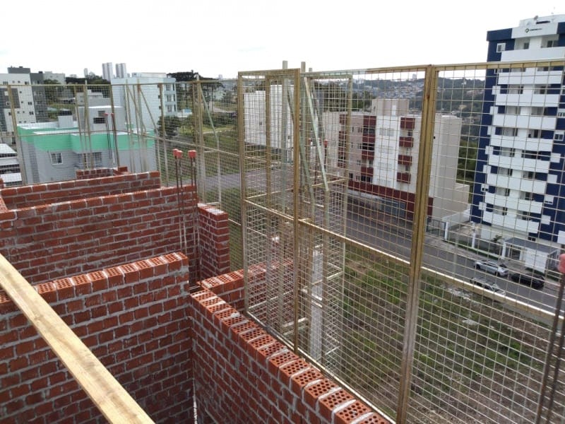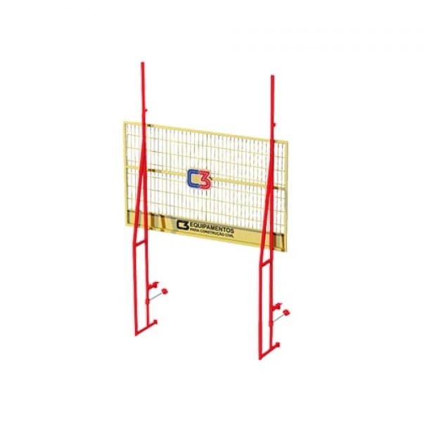 Adecuado para la protección periférica externa en mampostería estructural, cumple con todos los requisitos de los estándares NR18 y NBR 6.494. Ideal para losas listas o en construcción, garantiza la seguridad hasta el punto más alto de la pared.