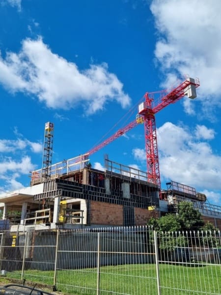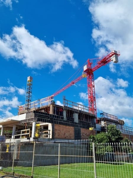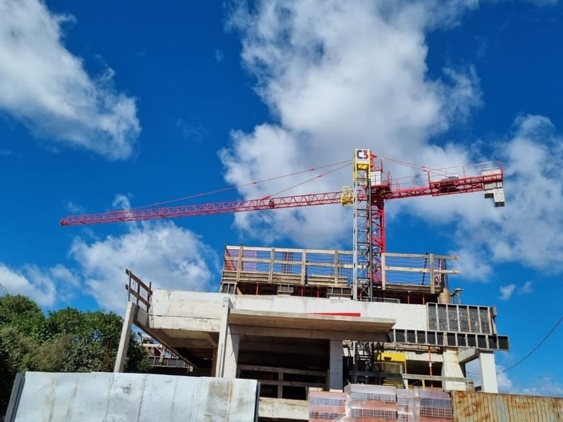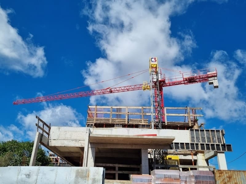Si la grúa elevadora destaca para edificaciones extremadamente verticales, las grúas con torres móviles son útiles en edificaciones muy horizontales, como algunos tipos de centros comerciales, por ejemplo, o condominios.