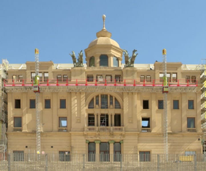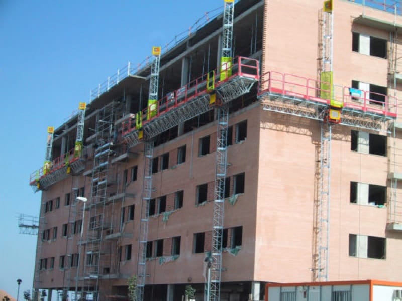 Es un equipo destinado a trabajos más altos y está fijo en la estructura del edificio, por lo que no tiembla ni se equilibra. Extensores de cubierta para fachadas dentadas de hasta 2,6 metros, totalizando un ancho máximo de 3,8 metros.