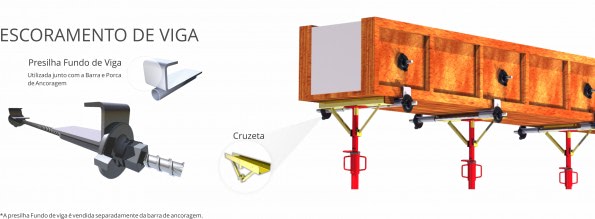 A Presilha Fundo de Viga tem como finalidade é sustentar a caixaria de Viga, pode ser usado em laje muito estreita. Esse acessório é usado na etapa de escoramento de viga